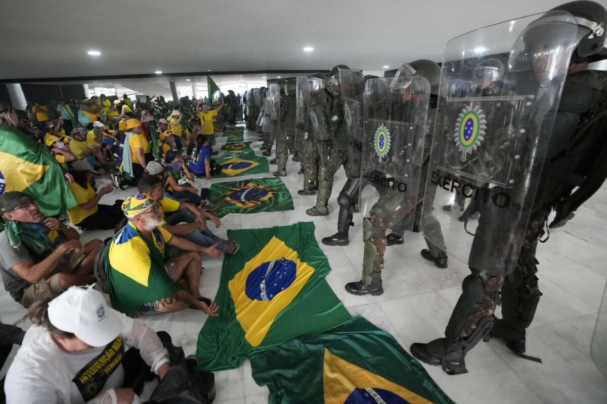 L’ordine pubblico di Brasilia, capitale federale, non dipende dal governo centrale ma dal governatore locale, il bolsonarista Ibaneis Rocha. Il responsabile della sicurezza a Brasilia è Anderson Torres, ex ministro della giustizia del governo uscente. Rocha è stato destituito dalla Corte. Per Anderson Torres è pronto un mandato d’arresto. Lui si era organizzato andando per tempo in Florida, insieme a Bolsonaro, che per non presenziare all’insediamento di Lula alla presidenza il primo gennaio e per non dovergli passare la fascia presidenziale se ne è scappato prima a Miami, poi a Orlando ospite di Donald Trump o comunque così ha fatto fino a ieri credere. E lì al momento resta). La polizia militare domenica ha prima lasciato che cento autobus carichi di bolsonaristi inneggianti al golpe arrivassero a Brasilia da vari presìdi che da due mesi campeggiano davanti alle sedi dell’esercito delle principali città brasiliane invocando l’intervento armato contro l’elezione di Lula alla presidenza della repubblica. Poi (i filmati della tv Globo lo mostrano con chiarezza) li ha scortati dalla sede centrale dell’esercito a 9 km dal centro, fino alla Piazza dei tre poteri. Lì, a guardia del Congresso e della Corte suprema, c’era un pugno di agenti armati di spray urticante. I bolsonaristi, convinti dalla propaganda social d’aver perso elezioni truccate (il presidente uscente ha detto per mesi prima delle elezioni che non avrebbe mai riconosciuto una sua sconfitta), hanno travolto senza difficoltà l’esile barriera e sono entrati nelle sedi del legislativo, della Corte suprema e della presidenza.