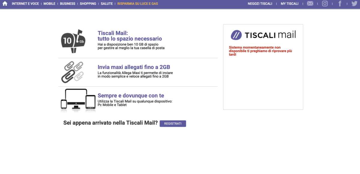 Problemi Tiscali Mail. Cosa sta succedendo e quando riprenderà a funzionare