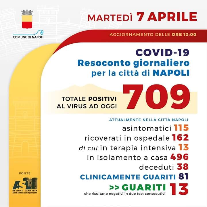 In mattinata anche il governatore Vincenzo De Luca ha effettuato un sopralluogo in mattinata “nell’area dell’Ospedale del Mare dove si stanno attrezzando, in tempi record, i moduli per il potenziamento delle terapie intensive. Avanti con rigore e determinazione per fermare l’epidemia”, le sue parole. L’inaugurazione è prevista per il 15 aprile.