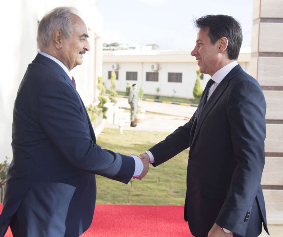 Roma prova a rientrare nella “partita libica”. E lo fa giocando la carta, alquanto consunta, della diplomazia. Khalifa Haftar ha avuto un incontro a Palazzo Chigi con il presidente del Consiglio, Giuseppe Conte, per discutere della nuova escalation nel conflitto libico, nel tentativo di arrivare a un rapido cessate il fuoco. L’uomo forte della Cirenaica, a capo delle milizie di Bengasi sostenute, tra gli altri, da Russia, Egitto ed Emirati Arabi Uniti, ha incontrato Conte intorno alle 15.30. Le prime notizie parlavano di un possibile meeting, intorno alle 18.30, anche con il primo ministro del Governo di Accordo Nazionale, alleato di Roma, Fayez al-Sarraj, informazione poi smentita dall’ambasciatore libico all’Ue, Hafed Ghaddur.