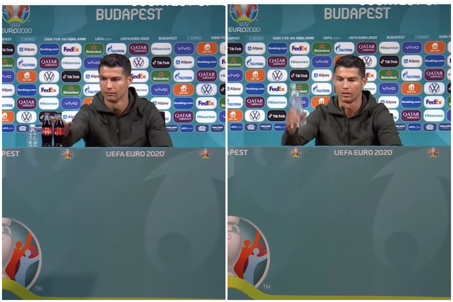 Com’era prevedibile ha scatenato la polemica il gesto di lunedì scorso di Cristiano Ronaldo: il portoghese, attaccante della Juventus, che durante la conferenza stampa alla vigilia di Portogallo-Ungheria, prima gara dei lusitani agli Europei di Calcio, ha tolto dal tavolo della conferenza le bottiglie di Coca Cola, mai sponsor dell’evento. Dopo aver tolto dall’inquadratura due bottiglie di Coca-Cola ha invitato tutto il pubblico a bere acqua.
