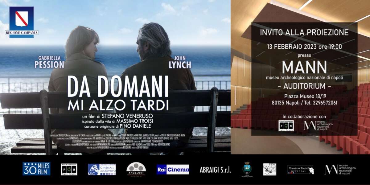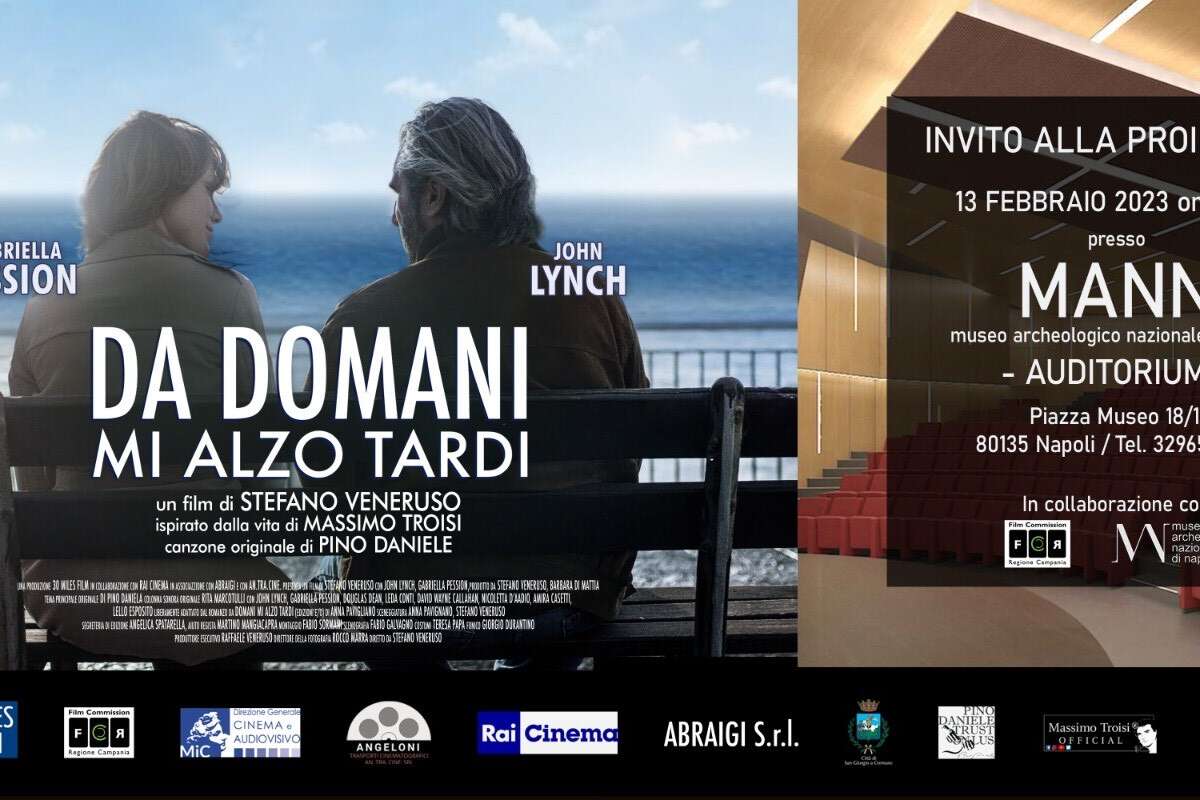 Lunedì 13 febbraio, alle ore 19, presso l’auditorium del prestigioso Museo Archeologico Nazionale di Napoli, sarà proiettato, in anteprima nazionale, il film “Da domani mi alzo tardi” di Stefano Veneruso, (regista, produttore e sceneggiatore), ispirato dalla vita dello zio, Massimo Troisi. L’iniziativa è organizzata in collaborazione con il MANN e con la Film Commission Regione Campania.