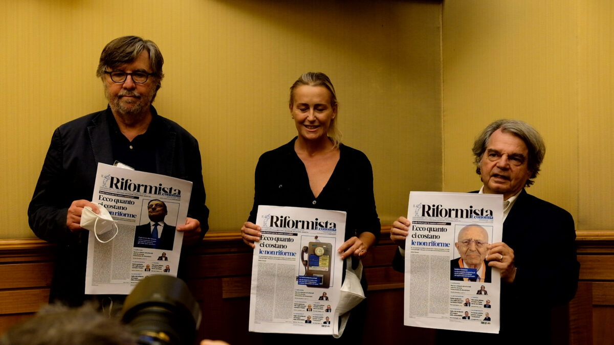 Non il consueto supplemento economico ma un giornale-laboratorio che lavora in alleanza con Il Riformista con l’obbiettivo di far pensare. È il settimanale Il Riformista-Economia, che sarà in edicola tutti i lunedì a partire dal 21 settembre, diretto da Renato Brunetta, che può contare su un comitato scientifico composto dal giudice emerito della Corte Costituzionale Sabino Cassese, dagli ex ministri dell’Economia, Giovanni Tria e Pier Carlo Padoan, e da Marco Bentivogli, già segretario generale della Fim-Cisl. Gente che non se ne starà in una torre d’avorio scendendone solo per qualche seminario, ma parteciperà direttamente, scrivendo articoli. «Missione: aiutare la classe politica, i gruppi dirigenti e la società civile a riflettere sulle riforme come regole, investimenti e comportamenti», ha detto Brunetta presentando l’iniziativa editoriale, ieri mattina, nel corso di una conferenza stampa che si è tenuta alla Camera dei deputati e alla quale, tra gli altri, hanno partecipato Marco Bentivogli e Giovanni Tria, insieme al direttore e alla condirettrice del quotidiano Il Riformista, Piero Sansonetti e Deborah Bergamini.