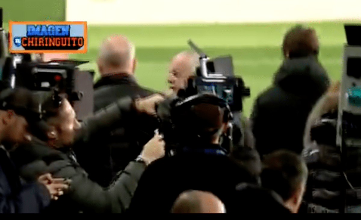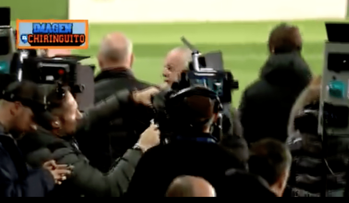 Nel video pubblicato dal Chiringuito, media tv spagnolo molto seguito, si vede De Laurentiis avvicinarsi a Politano e sottrarlo all’intervistatore. Poi non contento, probabilmente in seguito alla richiesta di spiegazioni dell’emittente tv, ritorna indietro e spinge il cameraman di Sky. Un episodio no sense che avviene a poche settimane di distanza dalla censura imposta a Dazn, titolare dei diritti televisivi della serie A.