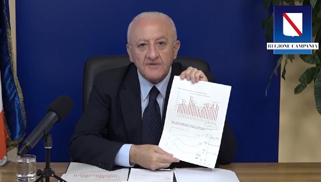 Si dice pronto a chiudere tutto “se la curva dei contagi continua a salire”. Nella consueta diretta Facebook del venerdì, la prima da quando è stato rieletto governatore della Campania, Vincenzo De Luca torna a vestire i panni dello sceriffo e prospetta, senza mezzi termini, un nuovo lockdown. Nell’ultimo mese e mezzo il picco dei contagi che sta registrando la Campania è senza precedenti. Ad oggi è terza in Italia per numero di attualmente positivi (dietro Lombardia e Lazio) considerato anche il numero esiguo di tamponi effettuati giornalmente, in media un terzo di quelli effettuati dalla Lombardia (che ha il doppio degli abitanti della Campania).