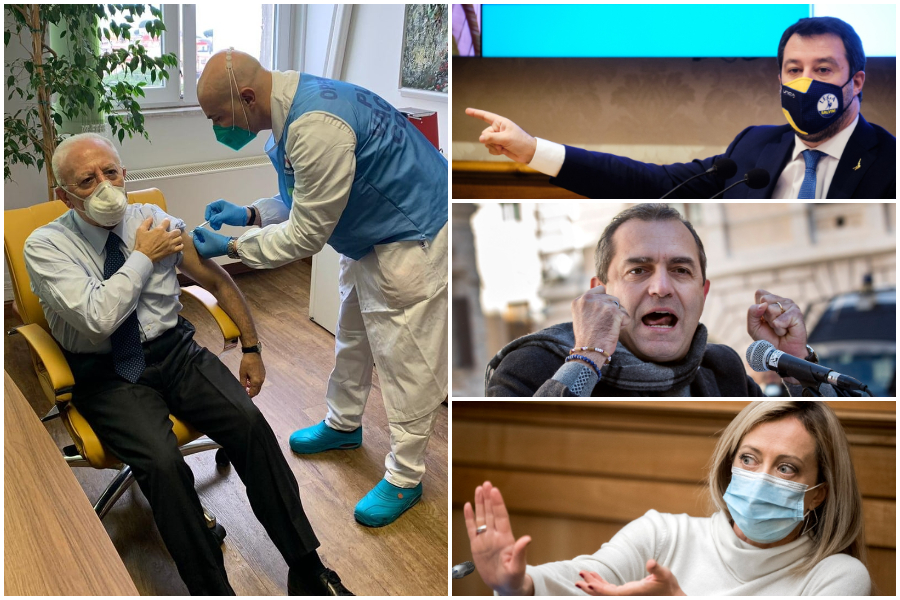 L’imboscata di De Luca ha dato stura allo sfogo del sindaco Luigi de Magistris (“Indegno abuso di potere”), di Matteo Salvini (“Salta la fila e toglie il vaccino a chi ne ha bisogno”), di Giorgia Meloni (“Immediata chiarezza”), del Movimento 5 Stelle (“Inaccettabile”), di Nicola Fratoianni (“Arroganza inaccettabile”), e chissà di quanti altri. Avranno chi più chi meno preso poco e niente in considerazione un sondaggio SWG: il 34% degli italiani è contrario al vaccino, più di uno su tre. Chi non si sofferma (e come dargli torto) sui commenti sui social a post e notizie sul vaccino, non avrà letto sparate del tipo: “Lo prenda per primo Conte”, “Cominci Speranza”, “Lo facciano prima i politici”, e via dicendo. L’iniezione che serve a un Paese per anni sobillato e allevato a dosi di scie chimiche e rettiliani è di fiducia, e in questo caso non è un modo di dire.