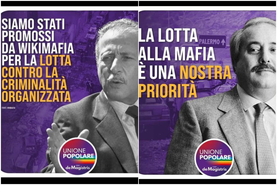 Chissà cosa penserebbero Paolo Borsellino e Giovanni Falcone vedendosi raffigurati sui volantini elettorali di Luigi de Magistris. Chissà cosa penserebbero della loro storia, delle loro gesta eroiche, del loro nome, strumentalizzato e utilizzato per fare un po’ di campagna elettorale in vista delle prossime elezioni politiche. Falcone e Borsellino sono patrimonio della nazione e su questo non vi è alcun dubbio. Sono morti in nome della lotta alla mafia e di una nazione più giusta, libera dalla morsa della malavita organizzata. Sono morti perché credevano in un’idea, non in un’ideologia. Quella appartiene alla politica dei nostri giorni che forse dovrebbe lasciare in pace i morti e la loro storia.