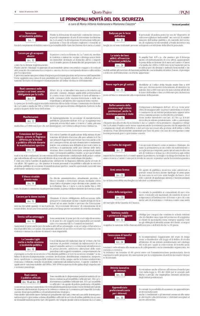 Lanciare messaggi non costa nulla, mentre rafforzare vigilanza e controllo preventivo nelle città da parte delle Forze dell’ordine richiede risorse finanziarie ingenti e quindi scelte politiche e riscrittura delle priorità che, alla fine dei conti, non si ha nessuna voglia di fare. Ecco perché dedichiamo questa settimana l’approfondimento di PQM a questo Decreto Sicurezza, un inutile e pericoloso hellzapoppin di reati, aggravanti e divieti (guardate lo schema analitico alla fine del paragrafo) dato in pasto alla pancia della gente impaurita e rabbiosa, per riceverne un fragoroso applauso che il tempo, anche breve, inesorabilmente scolorirà nella ennesima constatazione di un provvedimento legislativo che avrà prodotto non pochi danni, ma non una sola soluzione. Buona lettura.