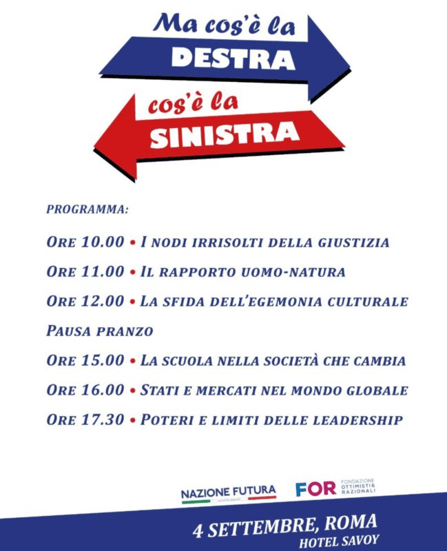 Quando, poco prima dell’estate, pensammo di organizzare un momento pubblico di riflessione su destra e sinistra partendo dalla indistruttibile invettiva di Giorgio Gaber (“Ma cos’è la destra? Cos’è la sinistra?”), avevamo grosso modo chiaro, Francesco Giubilei, Chicco Testa e il sottoscritto, cosa sarebbe accaduto.