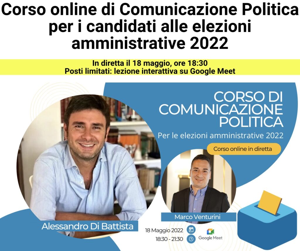 Accanto a Dibba il corso sarà tenuto da Venturini, che si descrive come un “consulente in comunicazioni politica per candidati di ogni livello” che ha “formato migliaia di candidati nella sua carriera portandoli ad ottenere il loro miglior risultato possibile nelle tornati elettorali”.
