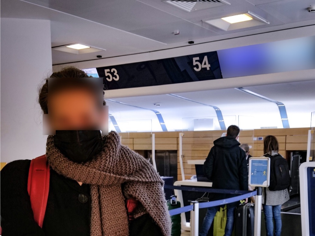 Passa il tempo al banco del check-in, in cui almeno due famiglie con minori dirette in Francia passando dal Belgio, altri passeggeri con test negativo svolto prima delle 48 ore e la passeggera con i suoi documenti di lavoro e locazione in olandese vengono fatti aspettare insieme, in una manciata di metri quadrati, tra la preoccupazione crescente e lo spregio delle norme anti-assembramento contro il Covid.
