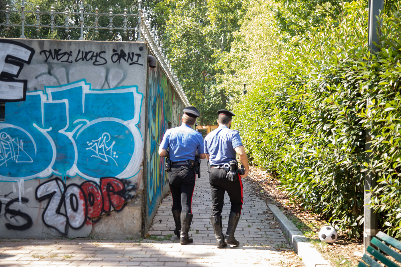 cronaca Violenza sessuale in Piazza Napoli a Milano: donna trascinata dietro un’aiuola.Nella foto: i rilievi dei Carabinieri sul luogo dove è avvenuto lo stupro di gruppo