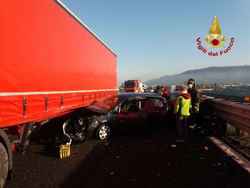 I pompieri arrivati da Arzignano hanno messo in sicurezza due auto, di cui una finita contro le barre laterali di un autoarticolato, probabilmente a causa di un rallentamento per un precedente incidente. Le cinque persone ferite in maniera non grave sono state assistite dal personale sanitario del Suem.