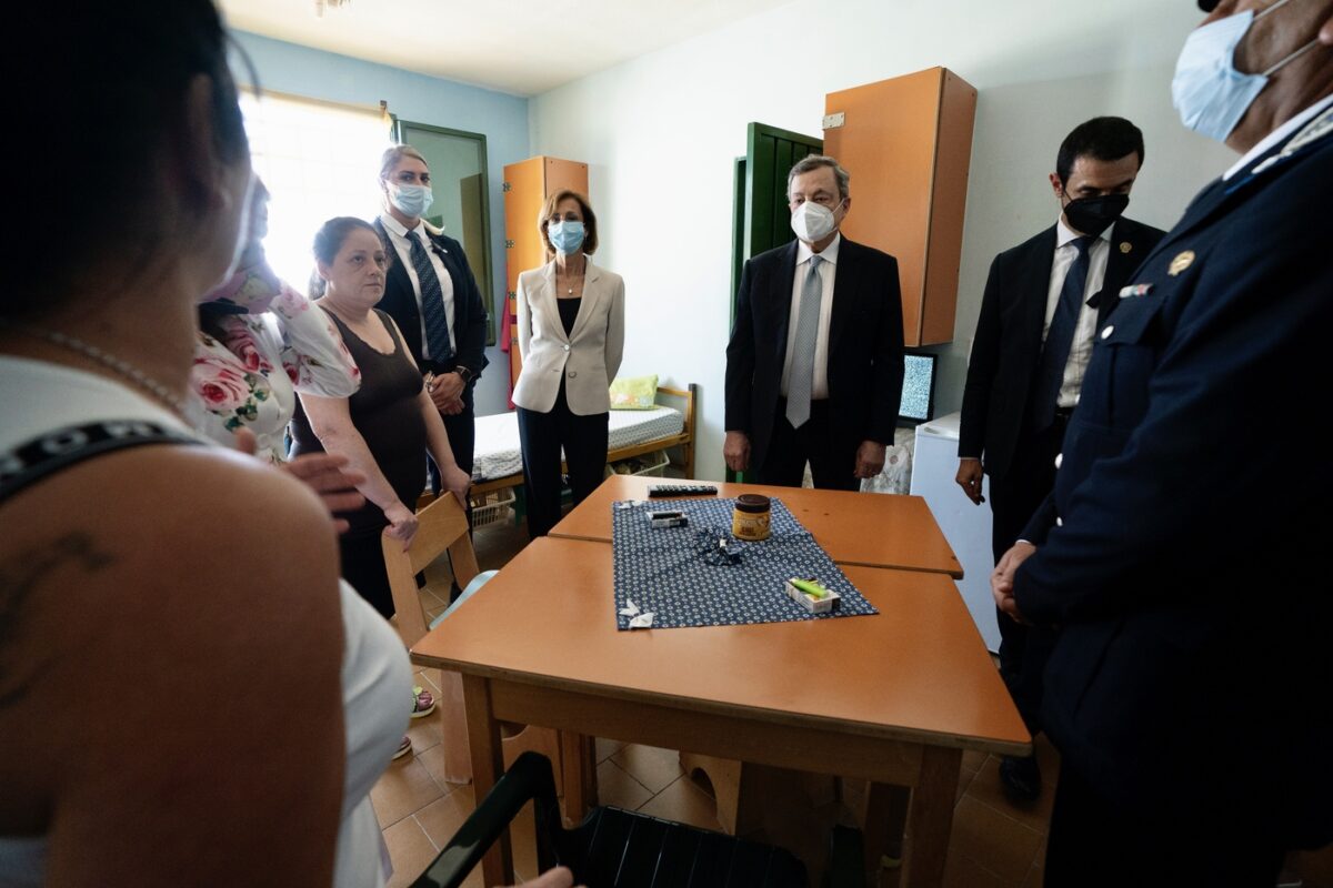 «Il Governo – ha assicurato Draghi – non ha intenzione di dimenticare. Non può esserci giustizia dove c’è abuso e non può esserci rieducazione dove c’è sopruso». Poi, ricordando l’impegno e la dedizione di tanti agenti della polizia penitenziaria, di educatori, mediatori e volontari, il premier ha dettato la linea: «Deve essere l’inizio di un nuovo percorso di vita». A fare eco alle parole del premier c’erano le voci dei detenuti che provavano ad oltrepassare le sbarre e farsi sentire al di fuori delle mura carcerarie. «Indulto, indulto!» gridavano i detenuti e acclamavano «Draghi! Draghi!». Nel carcere sammaritano il presidente e la ministra hanno visitato di persona il reparto Nilo, quello dei pestaggi e delle umiliazioni, percorrendo il tragitto che il 6 aprile 2020 portò 192 detenuti ad attraversare l’inferno.