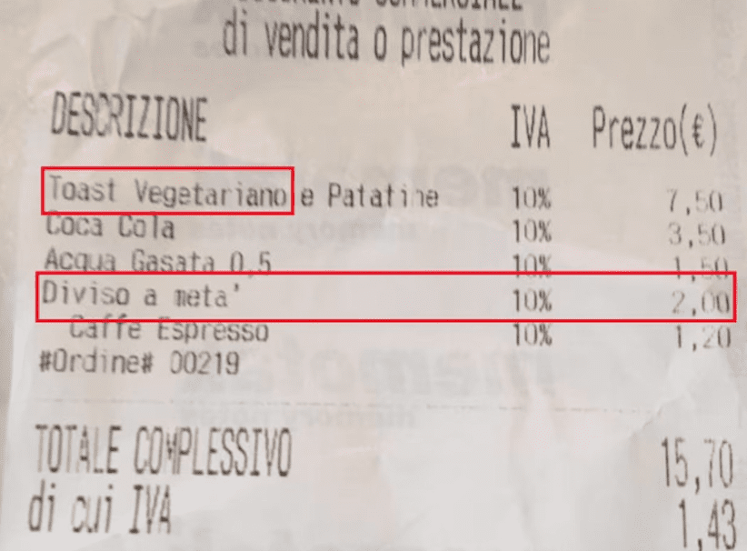 A denunciare l’episodio su Tripadvisor un turista che ha pubblicato la foto dello scontrino con la ‘voce’ in questione (“Tagliato a metà”). Una richiesta, quella della coppia in questione, costata due euro.