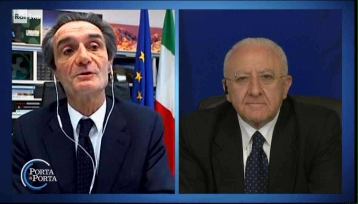 E’ già virale sui social il ‘duello‘ in tv tra i due governatori di Lombardia e Campania Attilio Fontana e Vincenzo De Luca. Dopo le polemiche sulla chiusura della regione meridionale annunciata da De Luca nel caso in cui al nord dovesse avvenire la riapertura, i due presidenti si sono confrontati nel corso della trasmissione “Porta a Porta” condotta da Bruno Vespa, in onda alle 23.40 su Rai 1.