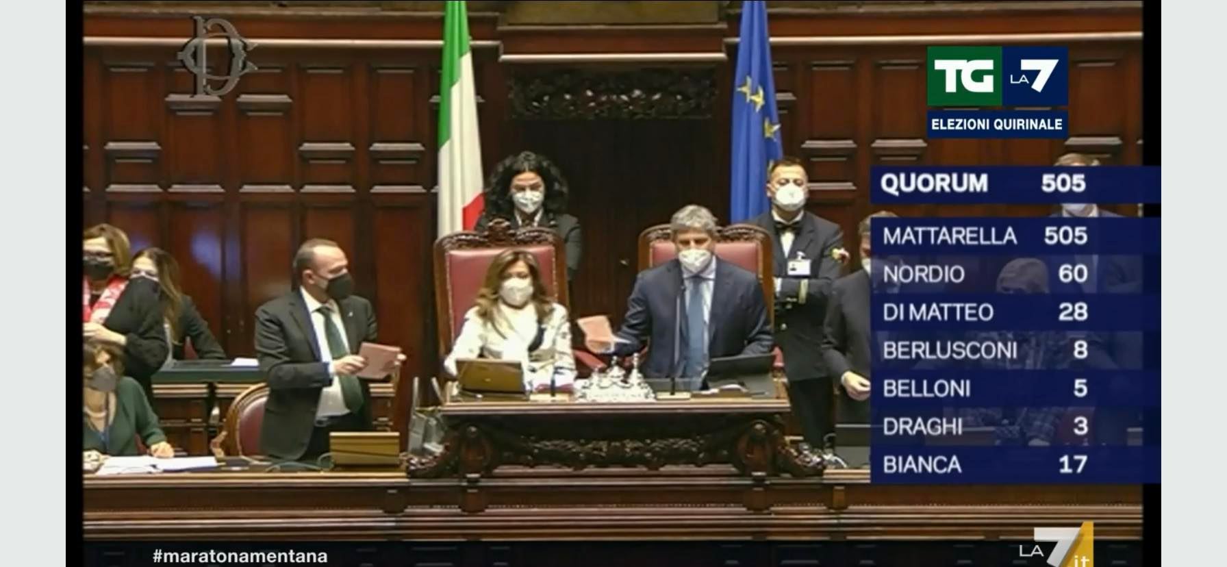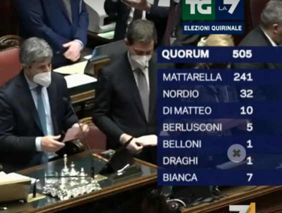 20:41 – Termina lo spoglio. Sergio Mattarella conquista 759 voti, Carlo Nordio 90, Nino Di Matteo 37.