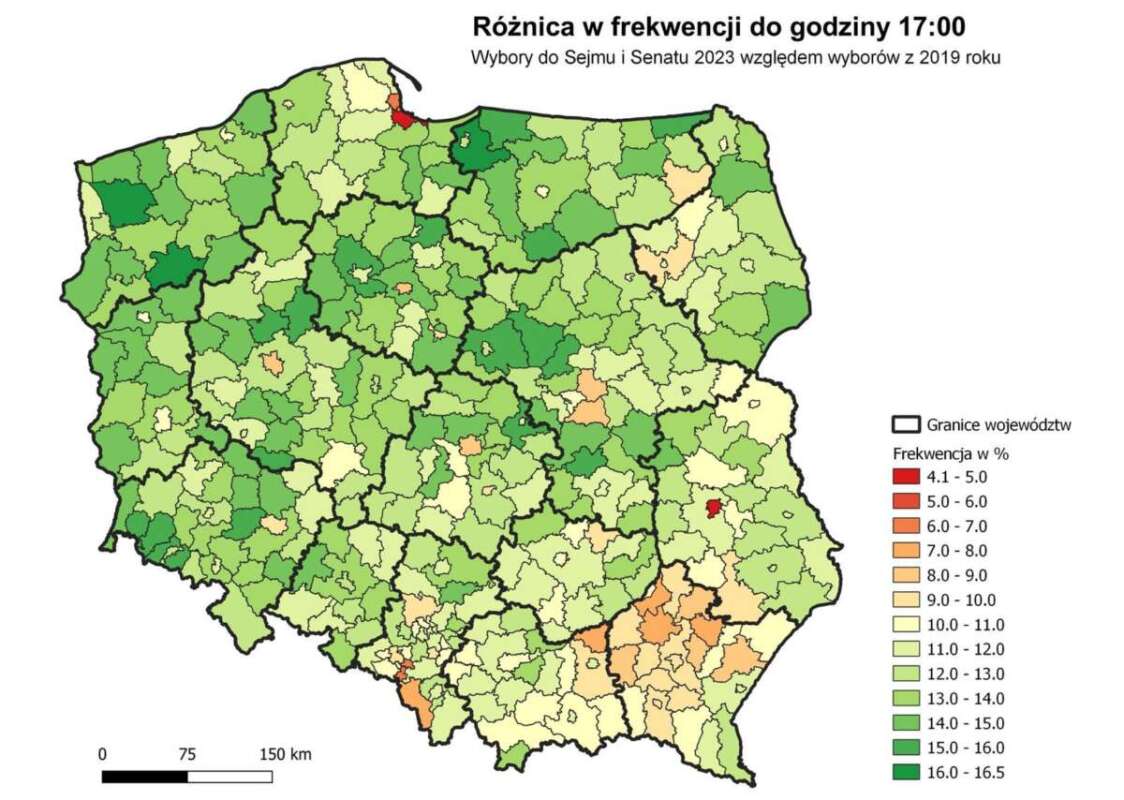 L’affluenza alle urne per le elezioni parlamentari in Polonia alle 17, solo quattro ore prima della chiusura dei seggi, è stata del 57,54% come riporta il sito della Commissione elettorale polacca. Si tratta di 12 punti in più rispetto alla precedente tornata, quella del 2019, quando alla stessa ora aveva votato il 45,94% degli aventi diritto. Considerando che il dato finale di quattro anni fa era stato del 61,7%, il secondo più alto dopo quella delle prime elezioni democratiche del 1989 (che era stato pari al 62,7%), quello odierno dovrebbe dunque risultare senza precedenti.