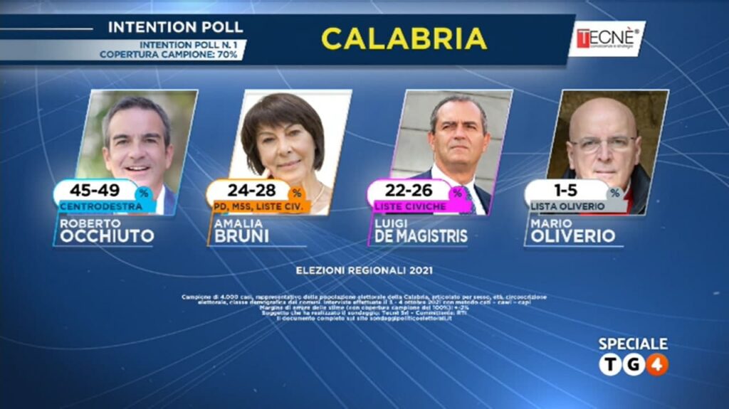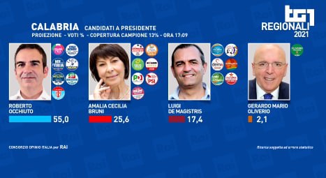 Quattro i candidati in lizza: Roberto Occhiuto, capogruppo di Forza Italia alla Camera, per il centrodestra, e Amalia Bruni, neurologa e ricercatrice di fama internazionale, per centrosinistra e Movimento 5 Stelle. Quindi i due ‘civici’: il sindaco uscente di Napoli Luigi de Magistris e l’ex governatore calabrese Mario Oliverio, ex Partito democratico e ora a capo di una lista civica.
