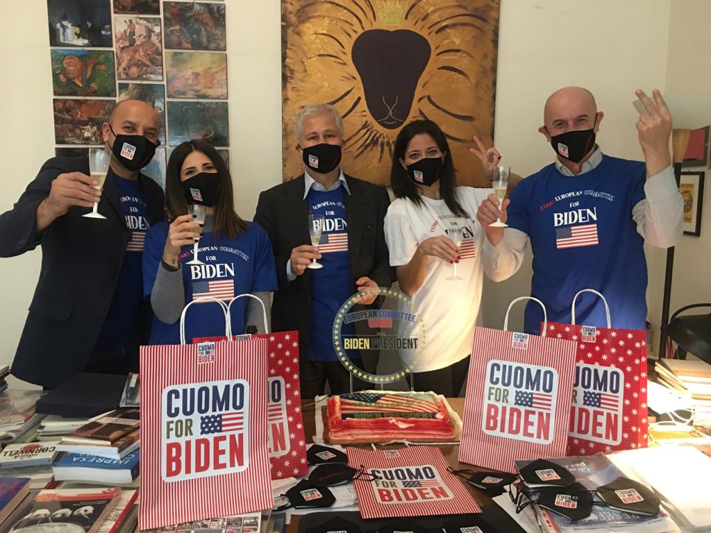 Brindisi e torta in onore dell’elezione di Joe Biden nuovo presidente degli Stati Uniti. Festeggia così l’esito delle elezioni presidenziali americane il Comitato europeo per Andrew Cuomo, che si è a lungo attivato durante la campagna elettorale per sostenere la candidatura del candidato dei democratici. Il Comitato, nato 20 anni fa per il sostegno alla corsa di Andrew Cuomo (originario di Tramonti, Salerno) alla carica di Governatore dello Stato di New York, è rappresentato da Sergio Cuomo, cugino di Andrew e già direttore di Mentoring Usa-Italia Onlus (associazione che da oltre 20 anni opera contro la dispersione scolastica e contro il bullismo nelle scuole) e da Alfonso Ruffo, Board Member della National Italian American Foundation (Niaf) a Washington e direttore de Il Denaro.