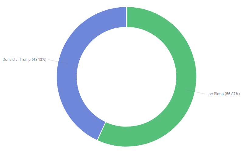 La sfida sui like la vince Biden con 31 milioni di like circa ai suoi post mentre Trump ne incassa 26 milioni.