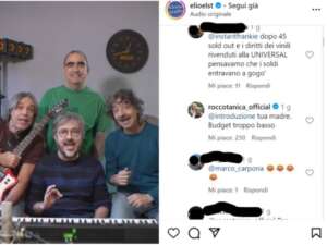 C’è qualche brand a cui non vi siete ancora venduti?” chiede un utente. A quel punto da Rocco Tanica, storico tastierista del gruppo, è arrivata la risposta choc: “Tua madre. Budget troppo basso”. Risposta che ovviamente ha scatenato ancora di più le orde di haters sui profili della band, con altri insulti e critiche, in un loop infinito che sembra non finire mai.