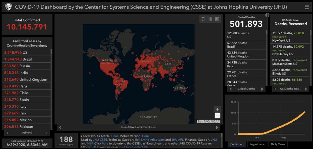 Hanno superato quota mezzo milione, 501.893 il numero esatto, le vittime nel mondo a causa della pandemia di Coronavirus. Nell’ultimo aggiornamento della Johns Hopkins University (Jhu) si evidenzia ancora una volta come siano gli Stati Uniti il paese ad aver pagato il prezzo più alto, con 125.803 morti, 288 nelle ultime 24 ore.