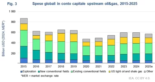 L’Agenzia ritiene quindi che bisogna sostenere un ciclo di investimenti nell’upstream Oil&Gas non inferiore a 500 miliardi di dollari per anno. Determinanti in questo contesto sono i tempi di realizzazione necessari per avviare nuovi progetti convenzionali che, in media, arrivano fino a 20 anni. Ciò significa che le decisioni prese oggi si tradurranno in approvvigionamenti solo nel 2040, complicando gli sforzi per bilanciare la domanda. Inoltre, sebbene esistano grandi volumi di risorse scoperte ma non sviluppate (in particolare in Medio Oriente, Eurasia e Africa), trasformarle in produzione effettiva richiede ingenti investimenti di capitale e stabilità geopolitica.