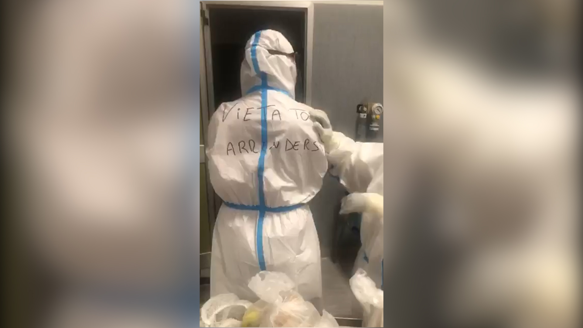 “Ci accudiscono e ci danno da mangiare, ci fanno stare nella pulizia, disinfettano 3 o 4 volte al giorno. Qui stiamo veramente bene”, continua il racconto. E intanto scorrono le immagini già viste dei sanitari imbardati da testa a piedi con le tute, occhiali e mascherine, mentre lavorano. Sono irriconoscibili e sulle tute tengono scritti i loro nomi con il pennarello. “Vietato arrendersi”, si legge sulla tuta di Gino che ha disegnato anche un cuore.
