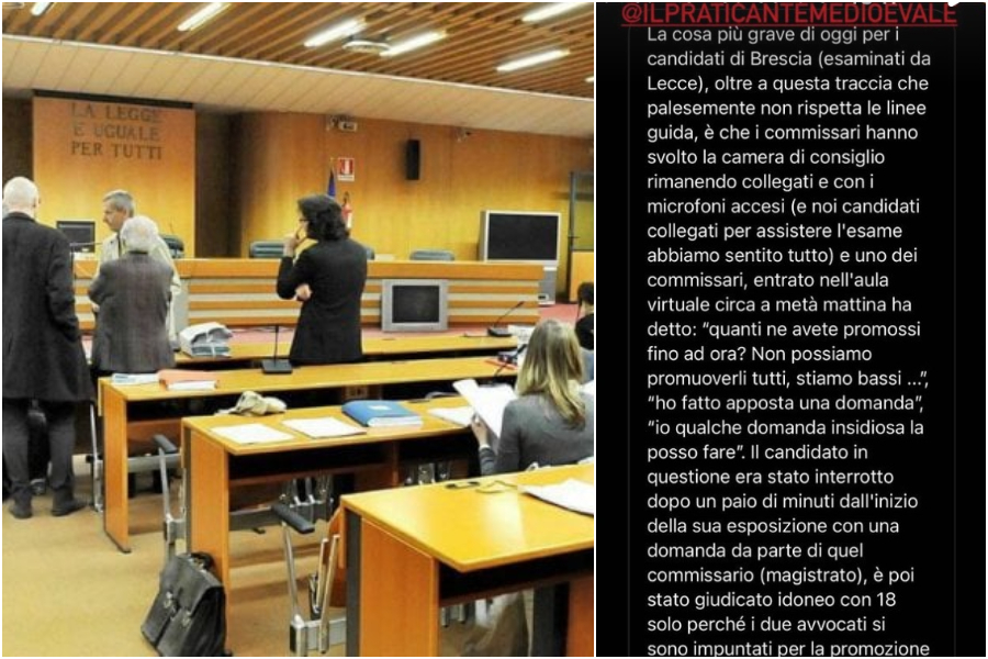 Un colloquio poi finito sui social, tramite il profilo Instagram di ‘Il praticante medioevale’. Nell’audio, che gli aspiranti avvocati hanno potuto ascoltare perché il commissario collegato da remoto aveva lasciato il microfono acceso, si sente dire: “Quanti ne avete promossi fino ad ora? Non possiamo promuoverli tutti stiamo bassi”.