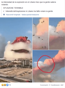“L’esplosione in Libano ha fatto volare in cielo la gente”. E’ solo una delle tante notizie circolate in rete dopo le forti esplosioni che hanno colpito il porto di Beirut, in Libano. Come i social ci insegnano, quando accade un avvenimento tragico si susseguono tutta una sfilza di informazioni e dichiarazioni che possono lasciare il tempo che trovano. In particolar modo ciò a cui si va incontro è il famoso fenomeno del voyeurismo, ovvero il gregge di guardoni del dolore che desiderano, in un evento drammatico, vedere di qualcosa di ancora più catastrofico. C’è molta probabilità che racconti crudi e cruenti siano in realtà corrispondenti al vero, ma è anche provato che spesso si può incorrere in esagerazioni con conseguenti bufale e fake news. Come in questo caso.