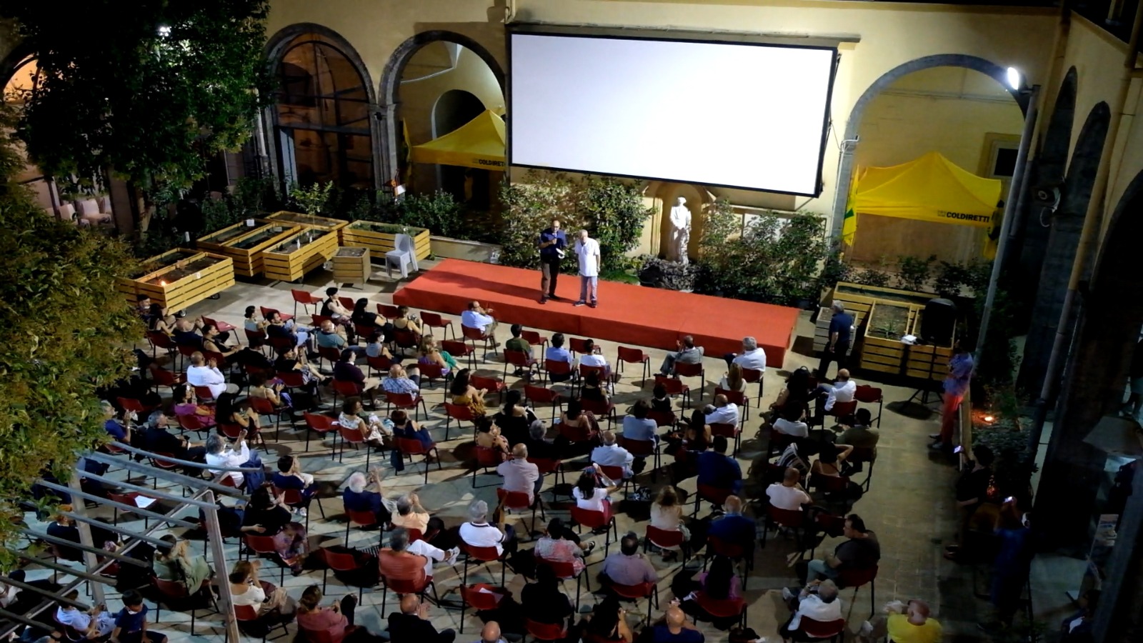 Visioni e incontri, proiezioni e dialoghi di cinema. Attori, attrici, registi, critici e appassionati dei lungometraggi e dei documentari si danno appuntamento a Napoli, nei Quartieri Spagnoli, presso la Corte dell’Arte di Foqus, in via Portacarrese a Montecalvario 69. Fino al 24 agosto, ogni sera dalle 21 (porte aperte dalle 20) i Quartieri Spagnoli offrono, nel pieno rispetto delle normative anti-Covid 19, un’esperienza di grande cinema: anteprime, film di qualità e d’essai nella cornice di una Corte del Cinquecento, nel cuore di Napoli. Rassegna di cinema organizzata da FOQUS Fondazione Quartieri Spagnoli, Movies Event e Bronx Film, con la direzione artistica di Pietro Pizzimento, Giuseppe Colella e Fabio Gargano. La rassegna è realizzata in collaborazione con Film Commission Regione Campania, Impresa sociale “Con i bambini” e con il sostegno di The filmclub e Minerva Pictures; il progetto ha il patrocinio della II Municipalità.