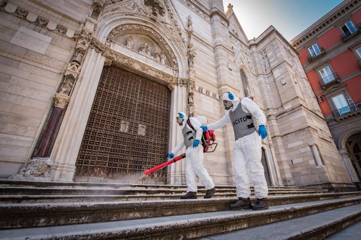 Anche l’Arcidiocesi di Napoli si unisce al lungo elenco di Enti e Istituzioni che hanno richiesto l’intervento dei disinfettori dell’Esercito per contrastare la diffusione dell’epidemia da CoViD-19. Questa mattina sono stati igienizzati gli spazi esterni ed alcuni locali interni della Cattedrale Metropolitana di Santa Maria Assunta, consacrata anche a San Gennaro il santo patrono della città, basilica monumentale nonché Duomo e sede dell’arcidiocesi della città di Napoli.