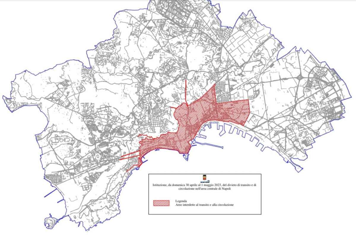 – area interna al perimetro delimitato dalle seguenti strade/piazze: largo Sermoneta, via Francesco Caracciolo, via Partenope, via Nazario Sauro, via Ammiraglio Ferdinando Acton, via Cristoforo Colombo, via Nuova Marina, via Ponte della Maddalena, via Reggia di Portici, via Emanuele Gianturco, via Taddeo da Sessa, corso Meridionale, via Firenze, piazza Principe Umberto, corso Giuseppe Garibaldi, piazza Carlo III, via Foria, piazza Cavour, piazza Museo Nazionale, via Santa Teresa degli Scalzi, via Salvator Rosa, piazza Giuseppe Mazzini, corso Vittorio Emanuele, salita Piedigrotta, piazza Sanazaro, via Mergellina;