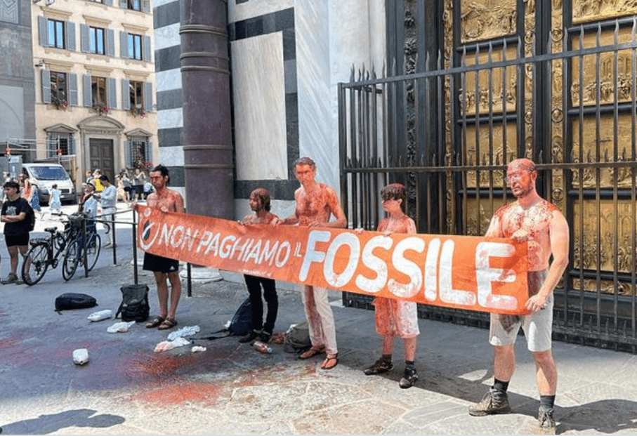 È stato imbrattato il selciato di fronte a una delle porte del Battistero a Firenze. Il gesto è stato compiuto e rivendicato da cinque attivisti di Ultima Generazione. Nessun danno per ora alla Porta del Paradiso.
