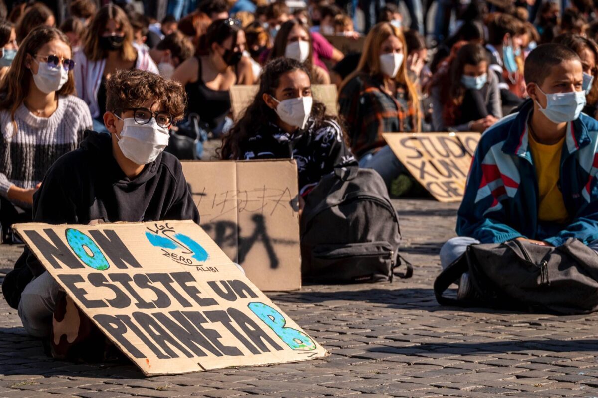 Arrivano a Piazza del Popolo con la colonna sonora dei Modena City Ramblers gli studenti di oltre 100 licei di Roma, gridando insieme: “Se ci bloccano il futuro noi blocchiamo la città”. Le piazze di tutta Italia si sono popolate di giovani attivisti scesi a protestare in favore del clima. “Il futuro è nostro e ce lo riprendiamo”, è il loro slogan che hanno scelto di scrivere sullo striscione azzurro che li precede. Al grido dei ragazzi però si unisce alle raccomandazioni anti Covid, viene amplificato dai megafoni tutte le raccomandazioni: “In questa Piazza è necessario mantenere mascherine, rispettare il distanziamento” gridano i giovai del servizio d’ordine.