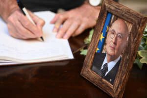A rendere gli onori militari, sulle note dell’Inno di Mameli, uno schieramento Interforze, poi all’interno del palazzo un reparto di Corazzieri. Successivamente il feretro, accolto in Transatlantico dal Presidente della Repubblica, Sergio Mattarella, e dalle altre autorità istituzionali italiane e straniere e accompagnato dai familiari, sarà condotto nella Sala dei ministri, dove riceverà l’omaggio dei rappresentanti degli Stati esteri.
