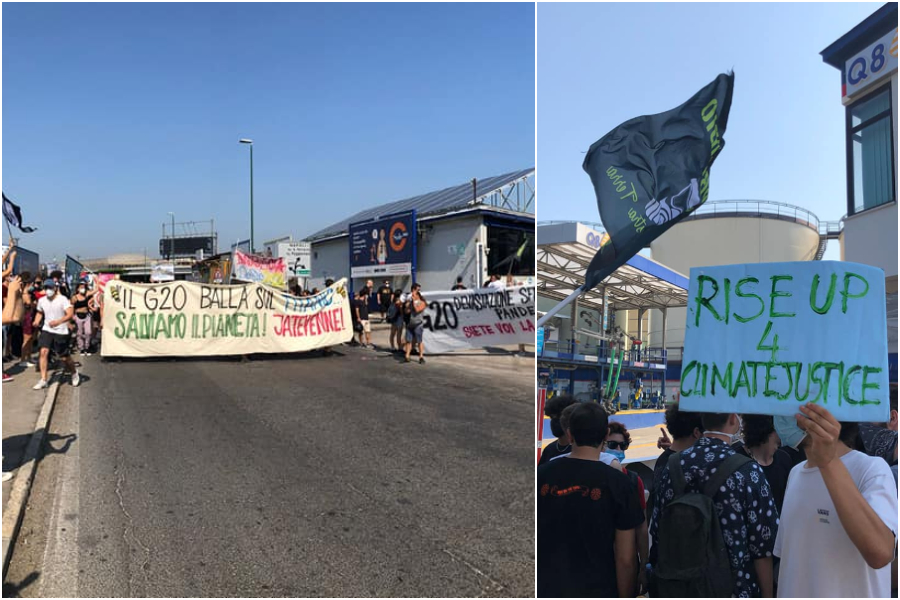 Nelle ore in cui è iniziato il G20 Ambiente, Clima ed Energia a Napoli, attiviste, attivisti, comitati territoriali hanno bloccato gli ingressi delle raffinerie di S. Giovanni a Teduccio, della zona est di Napoli e lo svincolo autostradale A3. “È esattamente questa la nostra idea di transizione ecologica: fuoriuscita dal fossile, senza compromessi, al di fuori di ogni operazione di greenwashing. Le multinazionali sono alleate dei governi, ma decisamente nemiche dell’ambiente e della nostra salute” tuonano i manifestanti, che danno appuntamento alle 16 per un grande corteo a piazza Dante.