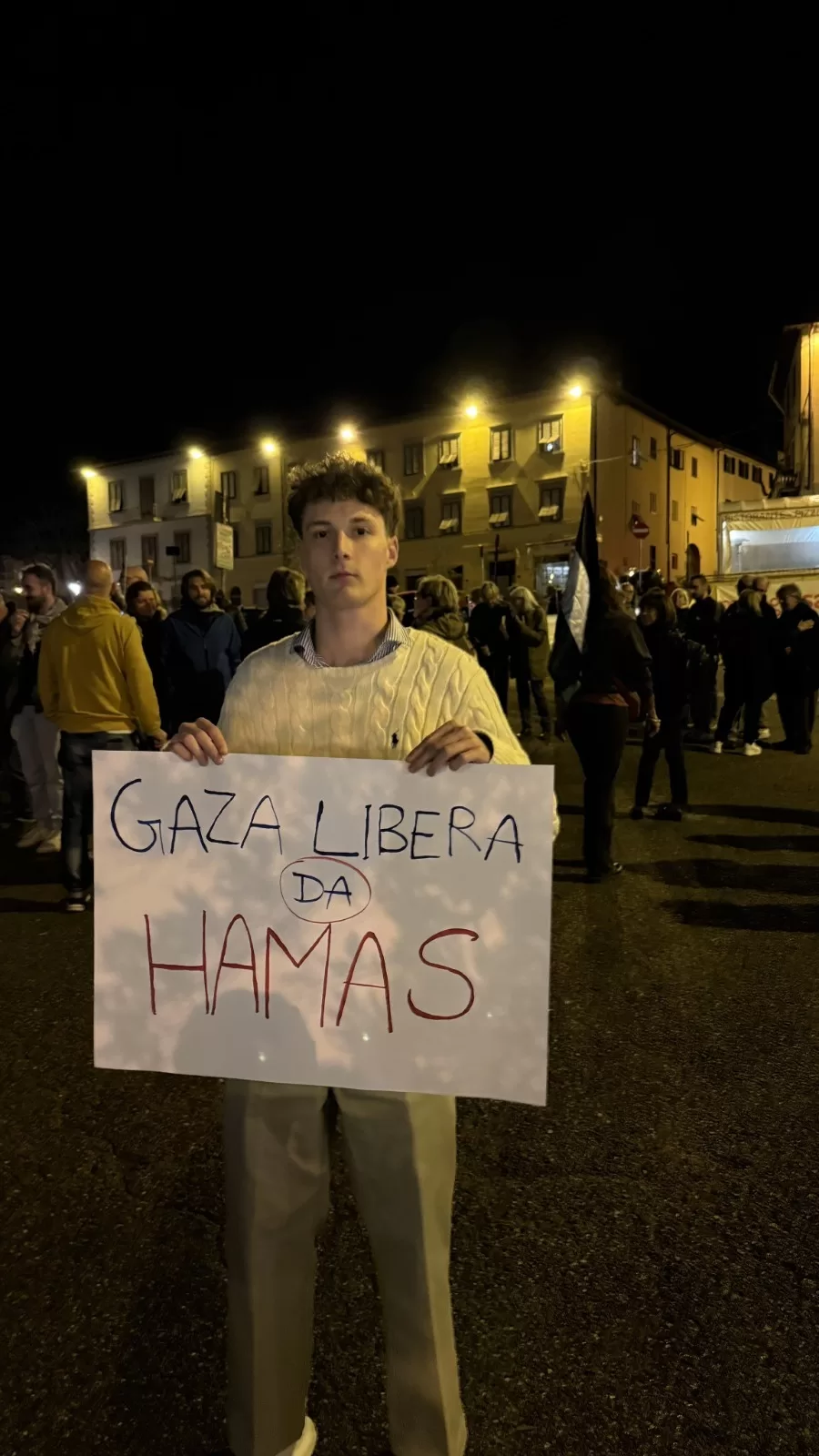 Alle contestazioni siamo abituati, anche a quelle dure, ma non ci saremmo aspettati un tale livello di odio solo per aver criticato Hamas. Nella serata di venerdì scorso io e Alessandro Ricci abbiamo partecipato a una manifestazione in favore del popolo palestinese davanti al palazzo comunale di Impruneta, provincia di Firenze. Lo abbiamo fatto non con simboli israeliani, bensì con un cartello che recitava “Gaza libera da Hamas”, facendo seguito alle recenti proteste di alcuni gazawi spente nel sangue dai terroristi. Niente di più scontato, verrebbe da dire. E invece no. In piazza la prima reazione è stata di urla e aggressione verbale con insulti vari, poi qualcuno ha accettato di confrontarsi. Il vero stupore è dato dalle reazioni sui social. Non appena abbiamo pubblicato sugli account X, Instagram e Facebook di Studenti per Israele una foto con il cartello di cui sopra, siamo stati sommersi da una valanga virtuale. Minacce e macabri auguri di ogni tipo, da “non si gambizza più la gente come una volta” a “non vi hanno pestato? Male”, fino a “faccia da calcagnate in bocca” e molti altri dello stesso tenore. Altrettanto grave è come più persone abbiano difeso i terroristi con commenti del genere, con “gloria ad Hamas”. Sconfortante.
