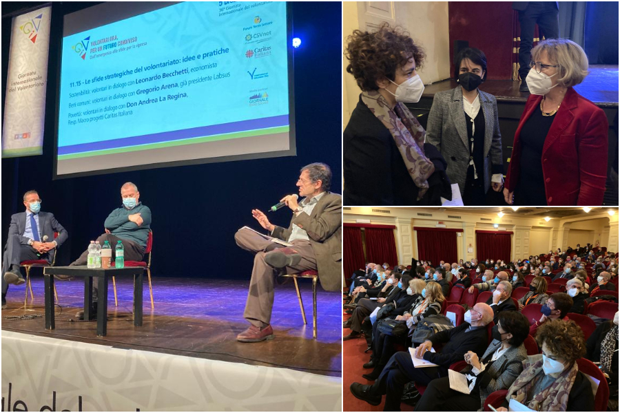 Con queste parole dirette ai volontari, si è aperta la 36esima Giornata internazionale del volontariato, la manifestazione organizzata alla Sala Umberto a Roma da CSVnet, Forum Nazionale Terzo settore e Caritas Italiana per ringraziare gli oltre 6 milioni di volontari attivi nel nostro Paese. Più di 400 rappresentanti del terzo settore, esperti e docenti hanno riempito il teatro Sala Umberto per questa prima edizione della Giornata vissuta in presenza dopo le restrizioni della pandemia.