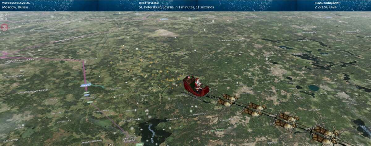 La stazione, situata a 400 chilometri sopra la Terra, offre agli astronauti “un punto di osservazione ideale per seguire Babbo Natale nel suo viaggio intorno al mondo”, ha spiegato la sicurezza aerea degli Stati Uniti e Canada. Su una slitta trainata da nove redini, pieno di regali, Babbo Natale era prima sopra la Russia, dopo aver viziato i bambini di Australia, Tailandia e Cina con più un miliardo e mezzo di regali già distribuiti.