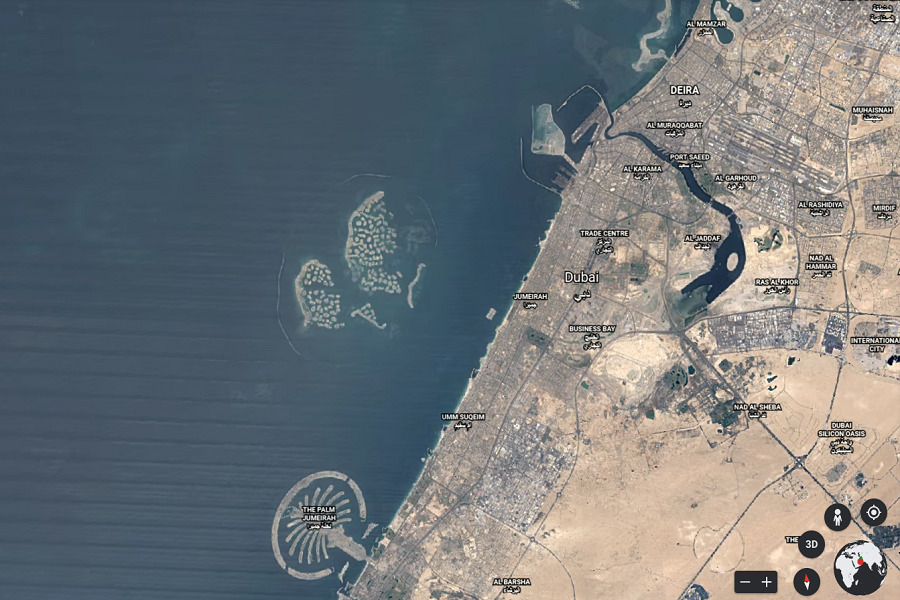 Impressionante, ad esempio, è la rappresentanza visiva del cambiamento urbano di Dubai, dove si vede chiaramente la nascita di nuove isole e l’evoluzione che la città degli Emirati Arabi Uniti ha avuto nel corso degli degli ultimi 40 anni.