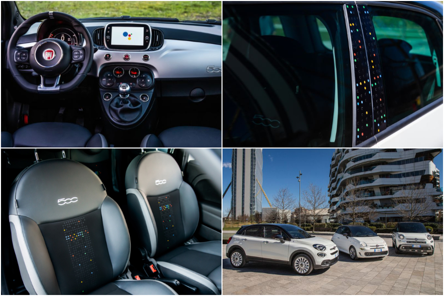 Alcuni modelli Fiat sono stati trasformati in un’edizione speciale. Sulle Fiat 500s, Fiat 500, 500x crossover e 500LMPV, infatti, appare per la prima volta al mondo il logo della società tecnologica Google sulla carrozzeria. Anche all’interno dei veicoli ci sono dei richiami come ad esempio sui sedili sono ripresi i colori della società Google: verde, rosso, blu e giallo. Inoltre, tutti e tre i veicoli sono dotati di un touchscreen da sette pollici con, ovviamente, Google Assistant integrato.