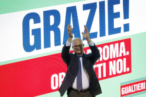 Prima dell’inizio della cerimonia, la sindaca uscente e il suo successore si sono affacciati dal balconcino dell’ufficio riservato al primo cittadino a Palazzo Senatorio, con vista sui Fori Imperiali, per una foto di rito insieme. Poi, richiamato dai fotografi, Gualtieri si è concesso ai fotografi per uno scatto.
