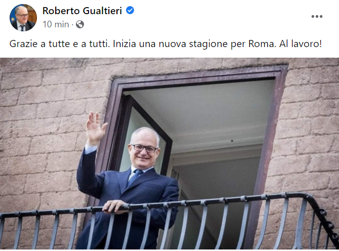 Inizia una nuova avventura per il neo sindaco di Roma. E’ lo stesso Gualtieri a comunicarlo sulla sua pagina Facebook che, con un post, ringrazia tutte tutti.