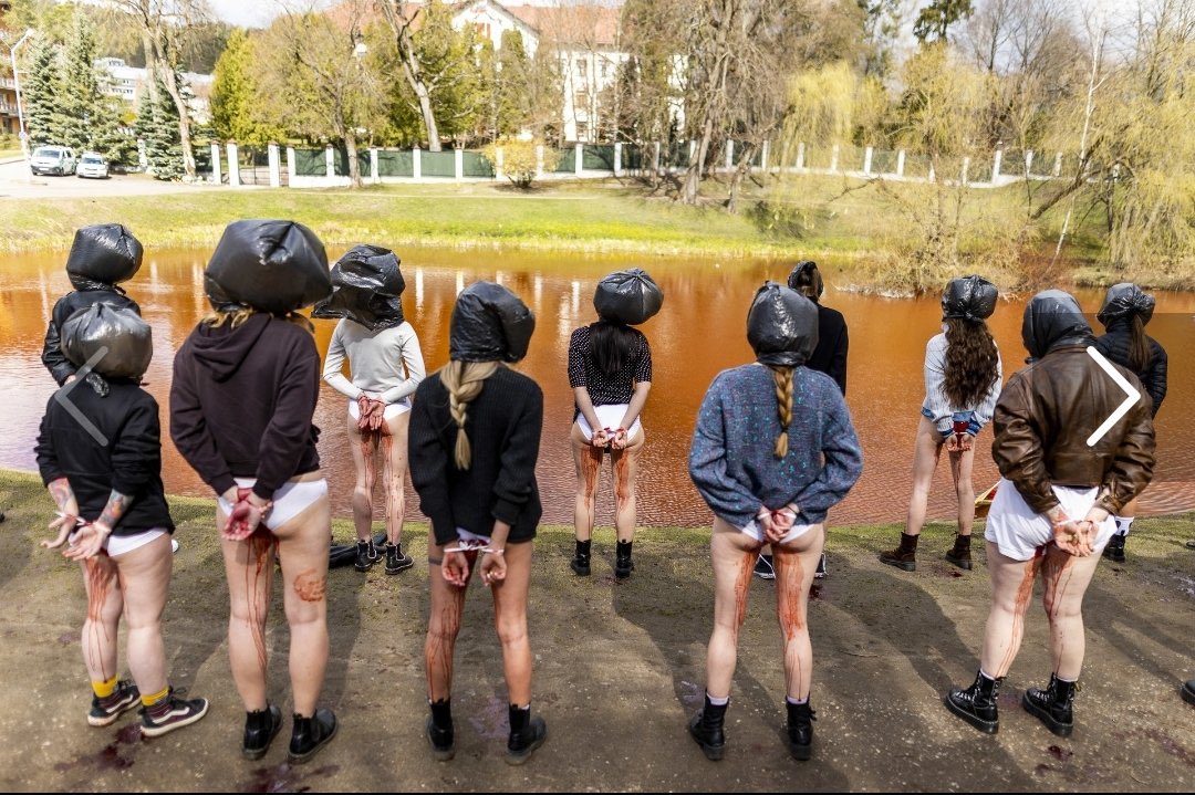 ORE 16:00 – A VILNIUS PROTESTA CONTRO GLI STUPRI IN UCRAINA – Donne in piedi con segni di sangue gocciolante sulle gambe nude e un sacchetto di plastica sopra la testa. E’ la protesta shock vicino all’ambasciata russa a Vilnius, in Lituania, contro gli stupri di donne ucraine da parte di soldati russi durante il russo in corso invasione dell’Ucraina.