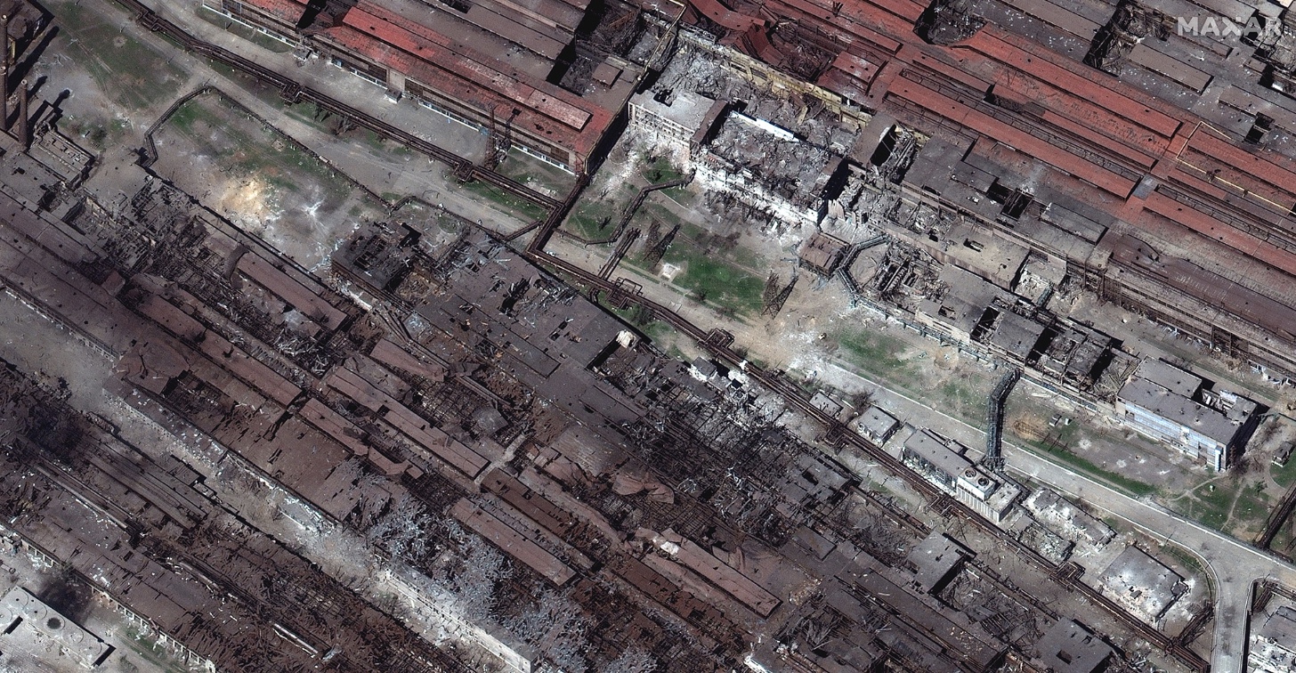 Lo dimostrano alcune immagini satellitari di Maxar Technologies pubblicate dalla Cnn. In seguito agli ultimi attacchi da parte delle forze russe, la gran parte degli edifici dell’enorme impianto siderurgico sono crollati o ridotti in macerie. Quelli ancora ‘in piedi’ hanno invece enormi buchi sui tetti, segno dei bombardamenti.