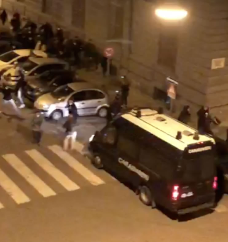 Quanto agli scontri, due poliziotti del reparto mobile della questura di Napoli sono rimasti contusi, uno alla mano e un altro a una gamba. Un militare ha riportato problemi all’udito per lo scoppio di un petardo. Numerosi i mezzi danneggiati della polizia, dei carabinieri e della municipale, divenuti oggetto di un lancio di bottiglie, di sassi e di pezzi di asfalto. Le forze dell’ordine hanno lanciato diversi lacrimogeni per difendersi. Le indagini proseguono a 360 gradi