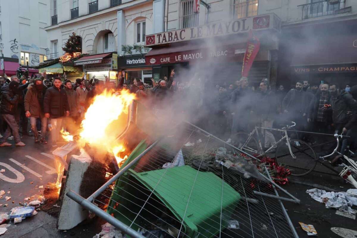 Nel quartiere del Fabourg Saint-Denis -a un centinaio di metri dalla rue d’Enghien, la zona dalla sparatoria di questa mattina sono arrivate pattuglie in tenuta antisommossa a rafforzare le forze di polizia in azione per sedare le proteste scoppiate dopo l’arrivo nel quartiere del ministro dell’Intero, Gérald Darmanin. Secondo diversi testimoni sul posto, la tensione è scoppiata dopo che la polizia ha fatto allontanare la folla, per consentire l’accesso di Darmanin nella zona del crimine. La folla è entrata in contatto con il cordone di sicurezza eretto intorno all’esponente governativo. La tensione è salita alle stelle, con lancio di lacrimogeni da parte della polizia mentre i manifestanti hanno lanciato oggetti contro gli agenti, bruciato cestini e un albero di Natale, eretto barricate in strada. Secondo BFM-TV, durante le proteste, è stata anche presa di mira un’auto della polizia, con il parabrezza distrutto da un palo in ferro. La zona centralissima di Parigi è completamente blindata mentre i militanti pro-curdi continuano ad intonare cori, fischi e slogan di protesta tra i roghi appiccati in strada.