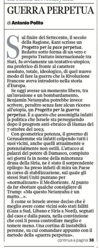 Tutto ciò che accade nella Striscia, conclude Polito, “è in ogni caso responsabilità politica di Israele”, perché “quella terra è comunque occupata e controllata dalle forze armate di Gerusalemme”. Le responsabilità di Hamas, lì, non ci sono: come non ci sono nell’articolo di Polito.